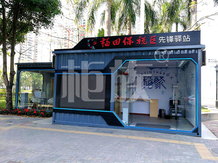 The station uses two containers in a staggered arrangement. The front wall uses large-area glass doors and windows, and the lines are smooth and angular, the stylish appearance and bright interior well highlighted the iconic and open features of the station.